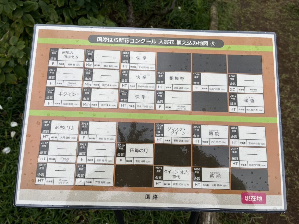 バラ園に行くにはこの園内情報を右側にして道なりに5分くらい歩きます。