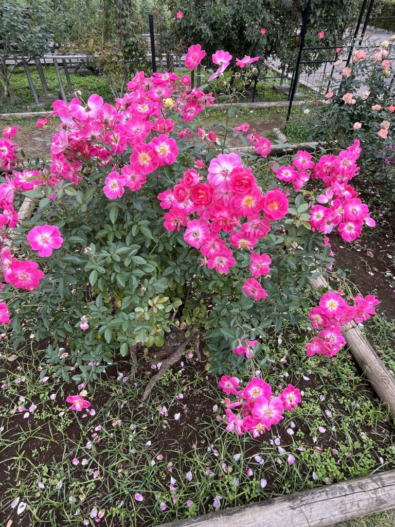 左側にバラ園が見えてきます。お散歩しましょうね。