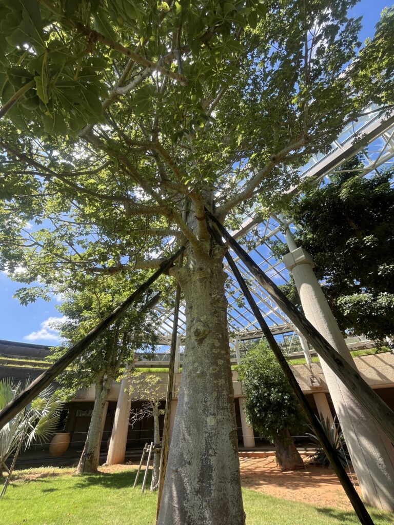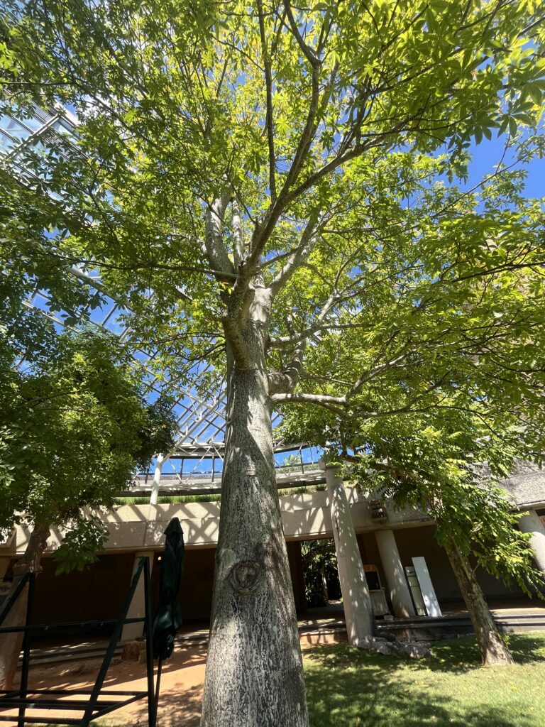 - 樹高は約25メートルに達し、幹の下部がとっくり(徳利)状に膨らむ独特の形状を持つ大木です。