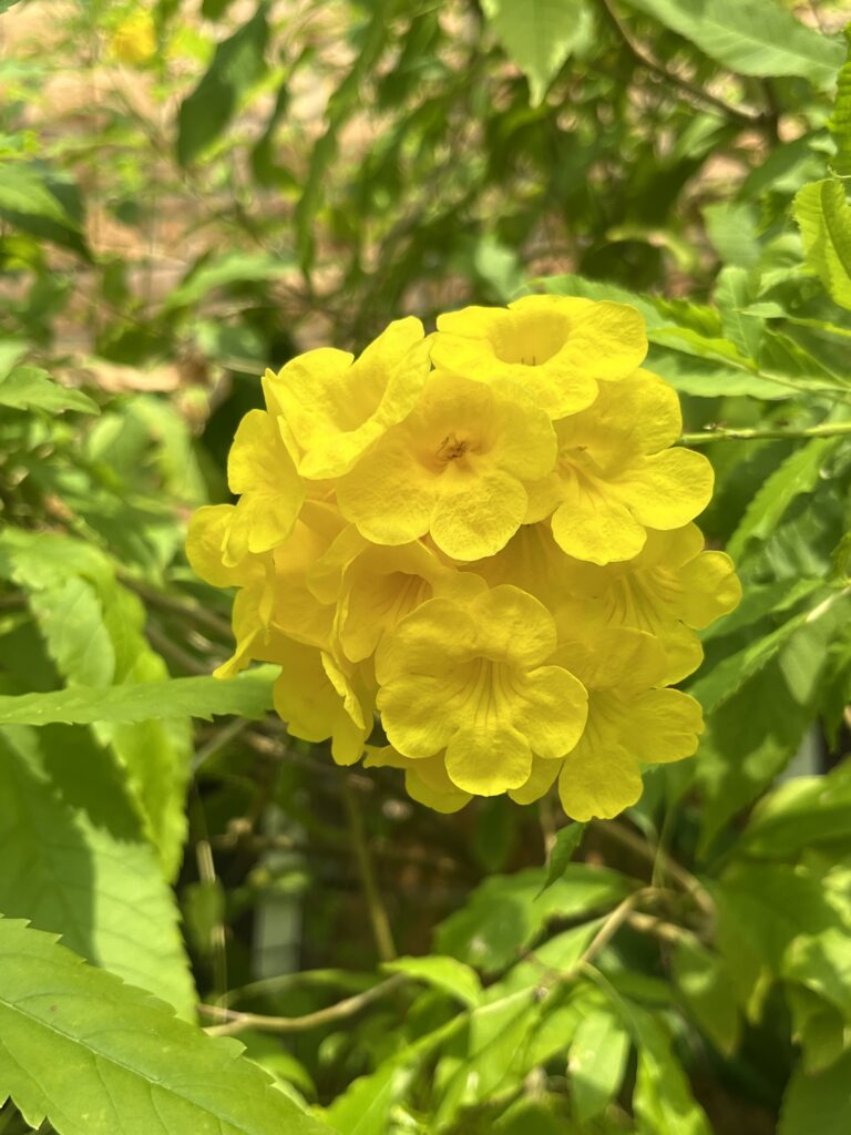 - 葉は掌状複葉で、小葉は5~7枚あり、鋸歯状の縁を持ちます。